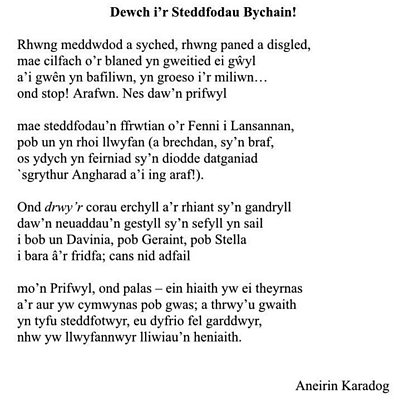 Cerdd gan Aneirin Karadog ar gyfer Bore Cothi.