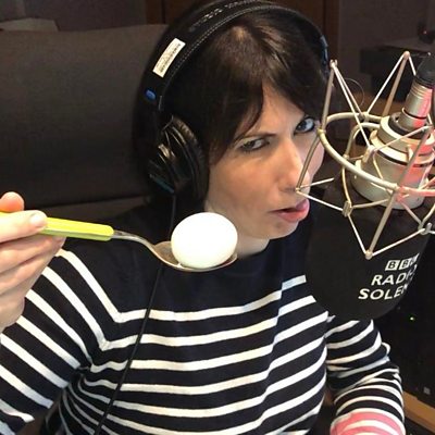 Lou tries a pickled egg for the first time with a little persuasion from Alun.