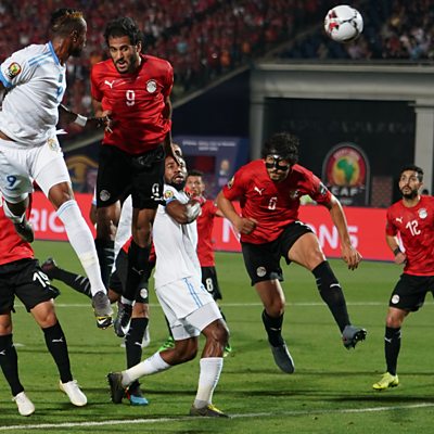 Some Coptic Christians, who make up 10% of the country’s population, don't feel that the national team represents them. Historically very few Christians are picked up by professional teams and there are no Copts in the 23-man national squad. Shaimaa Khalil speaks to Coptic Christian footballer Mina Bendary, religious rights activist Ishak Ibrahim and Egyptian federation spokesperson Magdi Abdul Ghani. Photo: Jonathan Bolingi Mpangi of Rd Congo heading on goal during the 2019 African Cup of Nations match between Egypt and DR Congo June, 2019. Credit: Ulrik Pedersen/NurPhoto via Getty Images