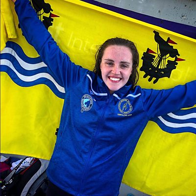 Eileen NicDhòmhnaill a’ còmhradh ri Marilyn, màthair Kara Hanlon.