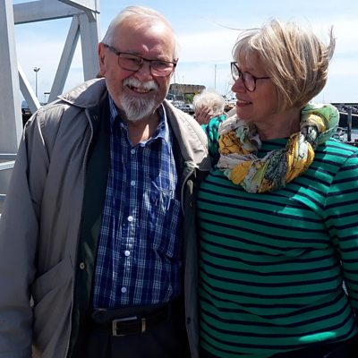 One local lady meets her godfather when he arrives in Guernsey on a cruise visit - they haven't seen each other in 33 years.
