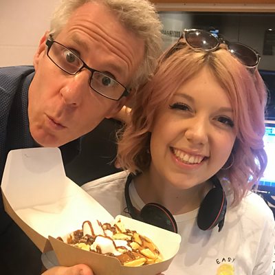 Portsmouth entrepreneur Eloise surprises Alun with pancakes.