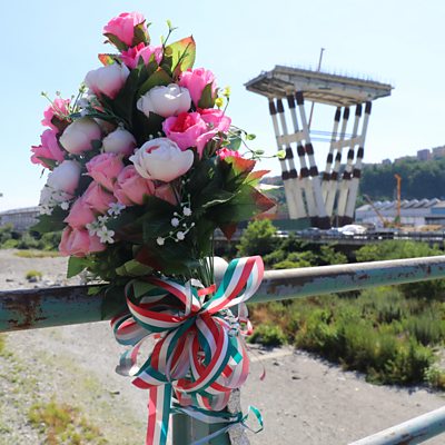 An icon of Italian design; a centrepiece of a community; a tragedy waiting to happen? When the Morandi bridge opened in 1967, it was one of the longest concrete bridges in the world, connecting the port of Genoa with the rest of Italy and Italy with northern Europe. Built during the post-war economic boom, it was the centrepiece of Italy’s plans to modernise its roads and was a proud symbol of the country’s engineering and architectural expertise. But all that came to a tragic end in August last year when a section of the bridge collapsed killing 43 people and leaving 600 people without a home. Helen Grady speaks to people whose lives have been touched by the bridge from the moment it was built to the moment it collapsed. And she asks how such a vital piece of infrastructure, carrying thousands of cars and lorries every day, could be allowed to fail. Producer Alice Gioia (Image: Flowers placed on railings near the collapsed Morandi Bridge in Genoa. Credit: BBC/Alice Gioia)
