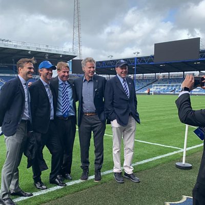 Portsmouth boss talks to Jordan Clark on the day actor Will Ferrell visited Fratton Park.
