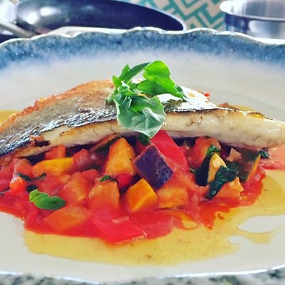 Alex Aitken cooks up a one-pot rataouille with a fillet of sea bass.