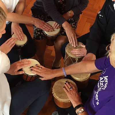 Cathy Le Feuvre visits a Jersey Alzheimer's Roadshow, and gets let loose on an African drum.