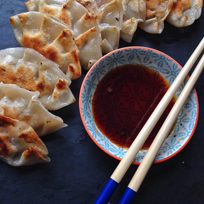 Recipe: These haggis dumplings are so good! Easy to make and absolutely delicious! You can make it veggie by using vegetarian haggis and veg stock instead of chicken stock. Cook and listen along to Hazel Paterson and Ben Jackson. Ingredients: • 200g haggis, roughly chopped • 1 1/2 tblsp ginger paste or freshly grated ginger • 4 - 5 tblsp plum and hoisin sauce (or oyster sauce) • 3-4 spring onions, finely chopped • 3/4 clove garlic, finely chopped • chicken stock For the dipping sauce: • 1 tblsp light soy sauce • 1 tsp toasted sesame oil • 1 tsp ginger paste • 1/4 clove finely chopped garlic • 1 spring onion, finely chopped • 1 tsp chilli oil (with the chilli flakes, you can also use sweet chilli sauce) • 2 tsp whisky • 2 tblsp chicken stock Gyoza wrappers (from the frozen section at Oriental supermarkets) veg oil for frying Method: 1. In a bowl combine all your filling ingredients and mash together with the back of a spoon, if possible let it sit or 30 minutes to 1 hour to allow the flavours to mingle. 2. Take a teaspoon of filling and place in the centre of a gyoza wrapper, wet your finger and run it around the edge. 3. Fold in half and squeeze edges together then crimp to seal. 4. Repeat with the rest. 5. Heat a sauce pan with 2 tablespoons or so of oil, add the potstickers in small batches so as not to over crowd. Fry for a minute or so until the side has turned golden brown then turn over and continue to fry for a minute. 6. Add a few tablespoons of stock to the pan and immediately cover with a tight fitting lid. Allow to steam cook for about 3 minutes or so until nearly all the water has cooked away then remove lid and continue to cook until the water has gone and they start to fry in the oil again. 7. Meanwhile make your dipping sauce by combining all the ingredients and mixing well. 8. Remove potstickers from pan and serve with the dipping sauce.