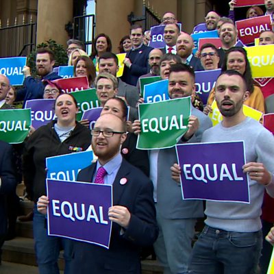 Historic day for LGBT campaigners as first gay marriage takes place in Northern Ireland. Stephen spoke to Alliance Party MLA Andrew Muir and Rev. Philip Campbell.