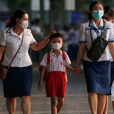 Some parents have concerns about the way children are responding to the virus outbreak as Celia Hatton, Asia Pacific editor, explains Photo: A student and school staff leave school Credit: Reuters