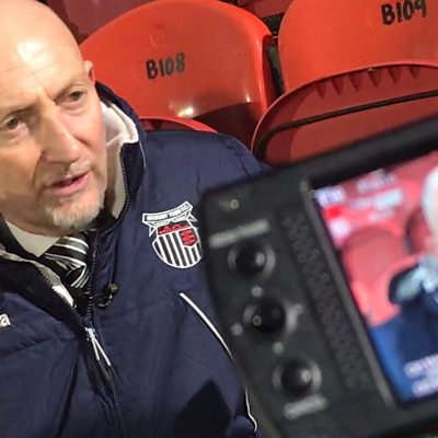 John Tondeur talks to Ian Holloway after Grimsby lose at home to Northampton.