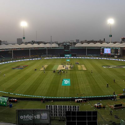 The coronavirus outbreak has forced many sports events across the world to cancel, but could they be played behind closed doors? Photos: The empty cricket spectators enclosures before the start of the T20 cricket match in Pakistan Credit: AFP/Getty Images