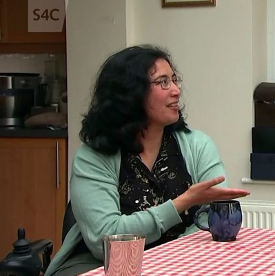 Radah Roberts, sydd ag MS, a'i gŵr Tegid yn trafod ymdopi gyda'r wlad ar stop