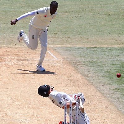 England fast bowler Jofra Archer reveals his toughest opponent in Test cricket, and how he learnt from the experience. Speaking to Alison Mitchell on Stumped, the 25-year-old's answer may surprise you. Credit: England's Jofra Archer bowls a short delivery during the fourth day of the first cricket Test between England and New Zealand at Bay Oval (Photo: AFP)