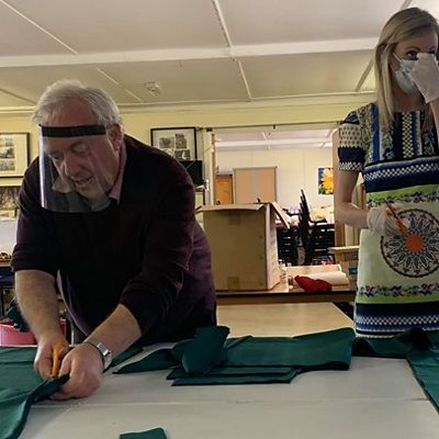 Sewing scrubs and masks for the front line workers.
