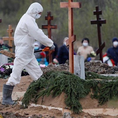The World Health Organization says the worldwide coronavirus infection total is now approaching five million. Some of the biggest increases in the number of cases have come from Russia where official figures suggest there are now more than 300,000 people who've tested positive. Remarkably though, the official death stands at under 3,000. So what's going on? Newsday heard from Oliver Carroll, Moscow correspondent for the Independent newspaper: (Photo: Grave diggers at the funeral of a coronavirus victim in St Petersburg, Russia; Credit: Reuters