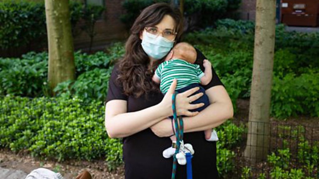 Brooke Young Russell describes delivering her baby in a ward opposite Central Park's field hospital for Covid-19 patients, and how the pandemic is adding to the sense of isolation she feels as a mother of a young child. Photo: Brooke Young Russell with her new baby, courtesy of Brooke Young Russell