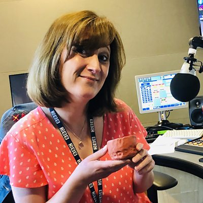 Gayle makes a pottery pinch pot with the help of Liz Danby from the Hive in Shipley