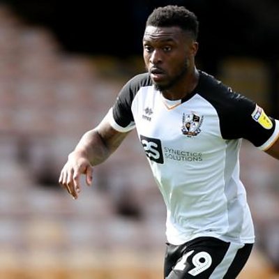 David Amoo speaks to Phil Bowers after signing a new contract at Port Vale