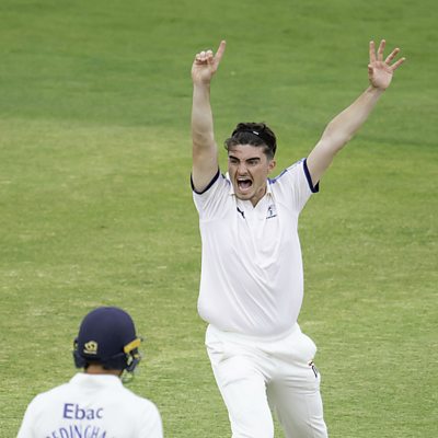 Yorkshire bowler Jordan Thompson stars with 3 wickets for just 6 runs in victory over Nottinghamshire at Trent Bridge. {Reporter: Jonathan Doidge} {Image: SWPix.com}