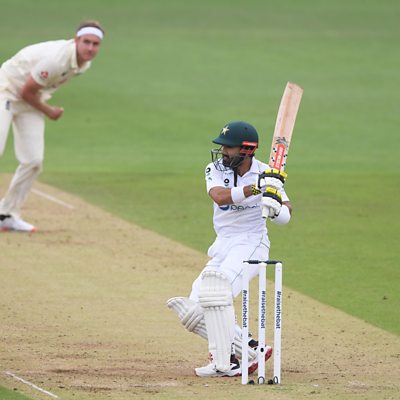Jonathan Agnew presents from the Ageas Bowl on a frustrating day two for England in the 2nd Test against Pakistan. Rain and bad light meant only 40.2 overs were possible as the tourists reached 223-9 with Mohammad Rizwan unbeaten on 60. Michael Vaughan and Azhar Mahmood join Aggers to discuss whether England got their tactics wrong and, looking ahead, if Pakistan's bowling attack could swing the match in their favour. There's reaction from Stuart Broad and we hear from Warwickshire Chief Executive Stuart Cain about plans to have some fans at the T20 Blast Finals Day. There's also a classic View from the Boundary with Waleed Khan, who survived being shot six times in the head during a terrorist attack in Pakistan when he was just 12 years old.