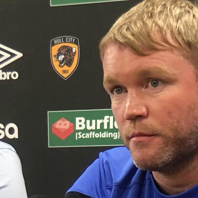 Hull City's head coach Grant McCann talks to Gwilym Lloyd.