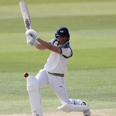 Yorkshire batsman Dawid Malan celebrates scoring a double century against Derbyshire.
