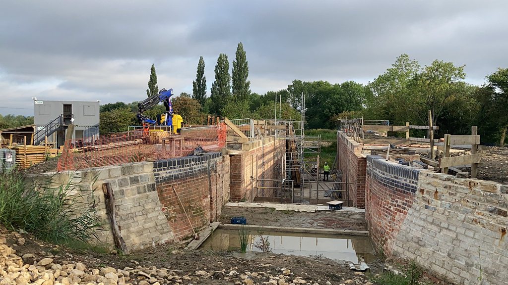 Reporter Kathy Green "helps" install the first new lock gates for 90 years at Stenwith.