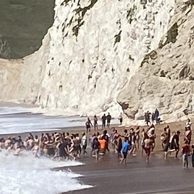 A dramatic rescue unfolded at Durdle Door beach when a person got into difficulty in the water. Dozens of quick-thinking beach-goers linked arms to form a human chain to help rescue the swimmer, putting their own lives at risk. Holidaymaker Jennie Bell witnessed the incident and told BBC Radio Solent: "there were some brilliant people on the shore, who were shouting to this person in the sea 'swim now with this wave' - and the next thing we know there was this lovely chain of people on the beach stretching into the sea, as much as they dared, trying to throw body boards over to this person." Eventually, one rescuer managed to dive into the water and grabbed the person in difficulty. An emotional Jennie went on to say: "it was lovely because the whole beach was stood up and was clapping, and it was amazing".