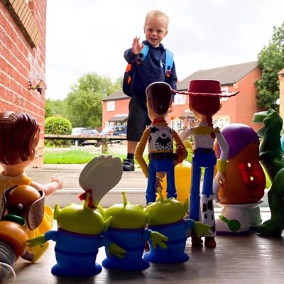 Anyone with children going back to school has to take that photo, you know the one, in school uniform ready to face a new year. This year those back to school photos meant a little bit more and that's why a Loughborough dad decided to do something a bit special when his son Vinny started school. Sean Donnelly's picture of his four-year-old waving goodbye to his Toys Story toys went viral and was liked tens of thousands of times. BBC Radio Leicester's Jo Bostock spoke to Sean to find out more.