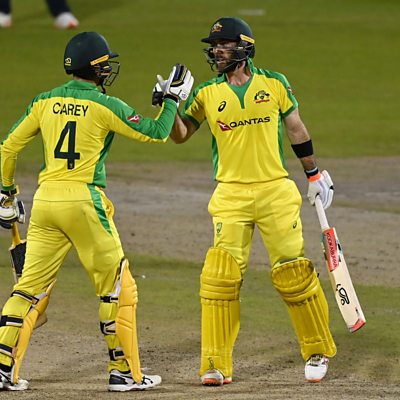 Reaction from Old Trafford where England's men played their last match of the summer, as Alex Carey and Glenn Maxwell both hit centuries for Australia to clinch a thrilling 2-1 series victory in the final one day international. We hear from both batsman on their record-breaking 212-run partnership as well as England captain Eoin Morgan, who reviews his side's performances with the white ball. The TMS team also discuss their champagne moments from an unprecedented summer of cricket that never looked like happening after the coronavirus outbreak. Picture: Glenn Maxwell of Australia embraces Alex Carey of Australia after reaching his century during the 3rd Royal London One Day International Series match between England and Australia at Emirates Old Trafford (Photo by Shaun Botterill/Getty Images)
