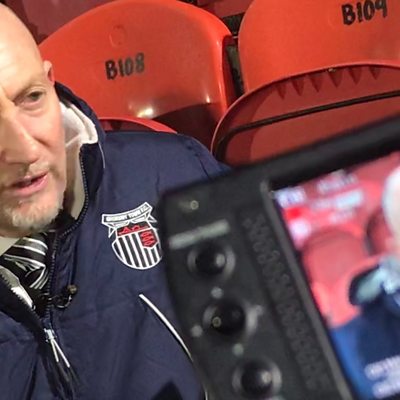 Ian Holloway talks to John Tondeur after a defeat in League Two.