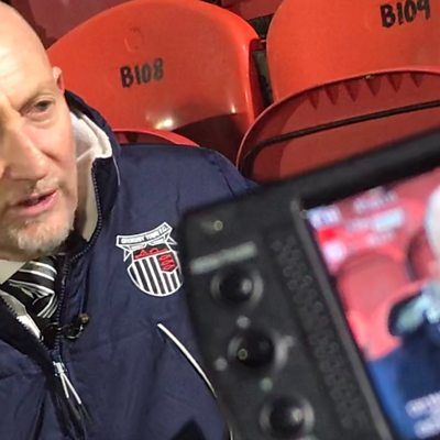 Grimsby Town manager Ian Holloway talks to John Tondeur after a defeat in League Two.