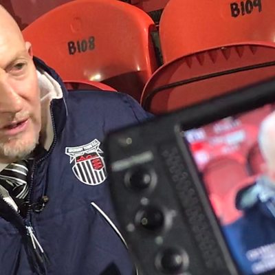 Ian Holloway talks to John Tondeur after a defeat in League Two.