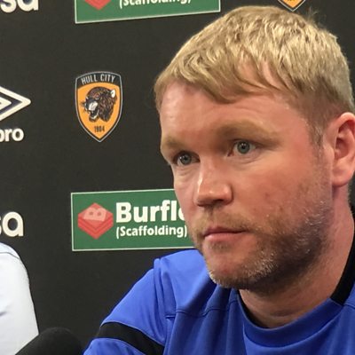 Grant McCann speaks to David Burns following their 2-0 defeat against Portsmouth.