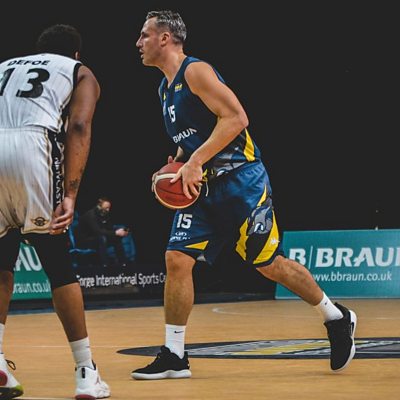 Sheffield Sharks captain Mike Tuck speaking to Peter Spencer, after 92-84 defeat to Newcastle Eagles.