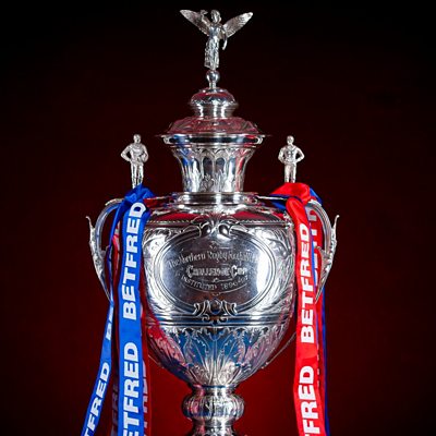 James Deighton discusses draw for first and second rounds of 2021 Challenge Cup with Craig Lingard (Batley), James Webster (Featherstone), Lee Greenwood (Dewsbury), Simon Grix (Halifax), John Kear (Bradford) and Mick O'Neill (Keighley).