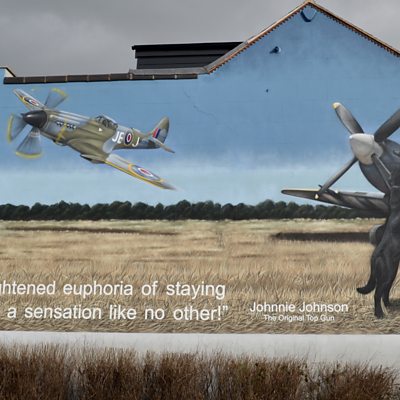 A real-life ‘Top Gun’ has been honoured on the side of a building in Loughborough. Air Vice Marshal James Edgar ‘Johnnie’ Johnson spitfire top gun and famous flying ace was born in Barrow-on-Soar in 1915. He rose to the rank of Air Vice Marshall and became a legend for his heroic exploits during World War Two. Loughborough's Ladybird Collective are behind the giant mural of the town’s most celebrated sons... BBC Radio Leicester's Ben Jackson Nick Hardy is from the Collective and John Weitzal is an archivist from Loughborough Schools Foundation