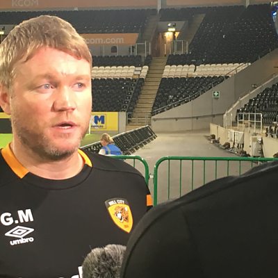Hull City's Grant McCann talks to Rob Staton ahead of their game at AFC Wimbledon..
