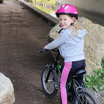 Megan, 5, is cycling the distance of a marathon to raise money for Barnsley Hospital.