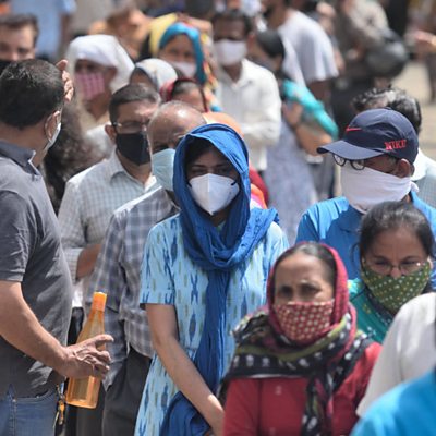 Epidemiologist Dr Ramanan Laxminarayan suggests three ways India could help control the rapid spread of coronavirus. Interview first aired on 22/04/2021. (Image: People wait in a queue to receive the Covid-19 vaccine at Dahisar Vaccination Centre in April 2021, Credit: Getty Images.)