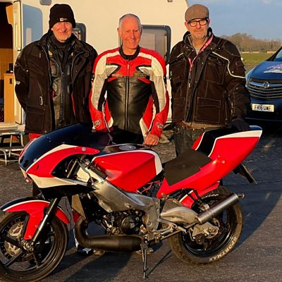Three friends from Rutland have set 18 land speed records in one day riding around Kendrew Barracks for 12 hours on a motorbike. They rode a 125CC machine which ran faultlessly apart from a puncture at nine hours. The trio were only allowed less than an hour of idle time for rider changes, refuelling and any repairs. The records had not been challenged for more than half-a-century. The Auto Cycle Union, the official motorcycle record authorising organisation, is yet to confirm the records. Ian Arnold, Patrick Bramman and Richard Scott already had a string of records to their name but wanted more - as BBC Radio Leicester's Jimmy Carpenter found out.