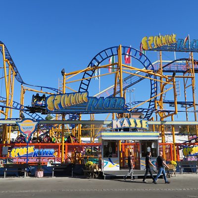 Reporter Jon Chubb rides the 'Spinning Racer' at Fantasy Island!