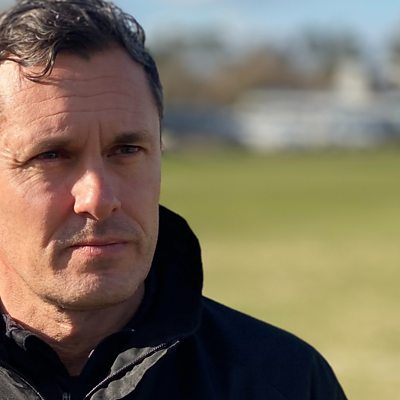 Grimsby Town boss Paul Hurst talks to Matt Dean ahead of their final game in the EFL
