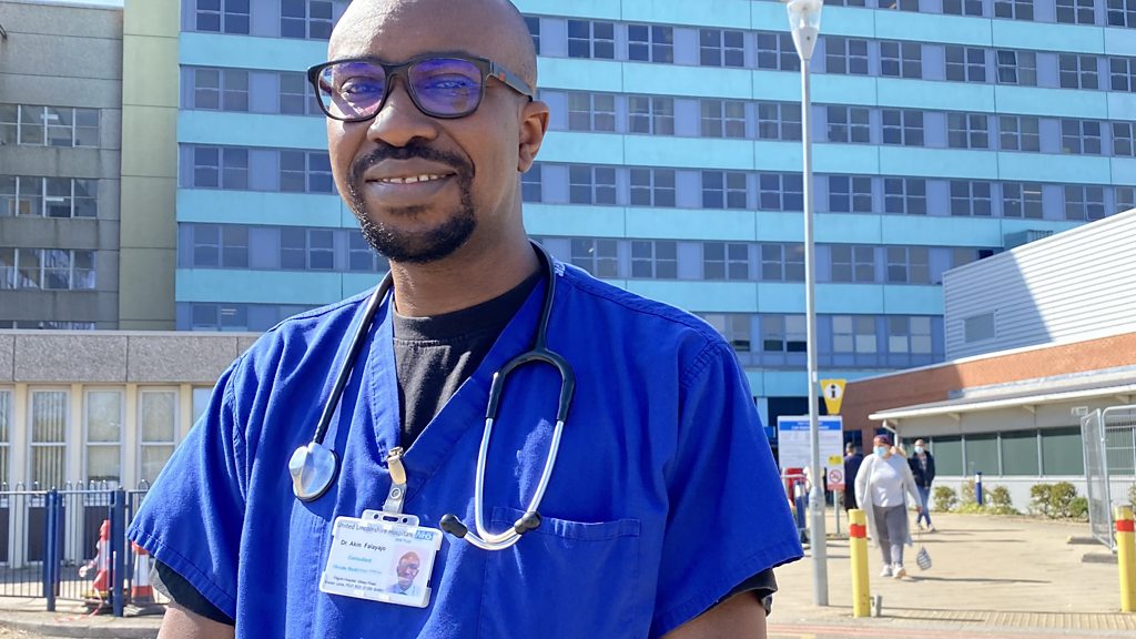 Dr Akin Falayajo from Pilgrim Hospital Boston chats to Sean Dunderdale.
