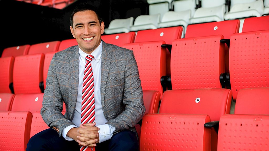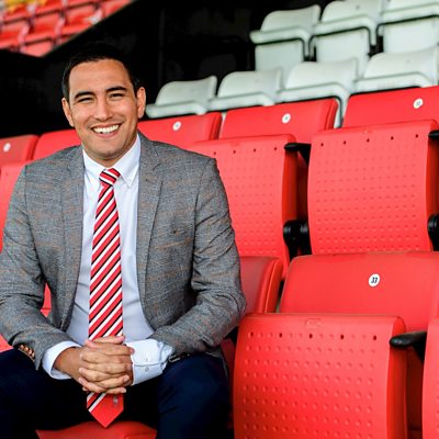 Chief Executive of Lincoln City, Liam Scully, chats to Sean Dunderdale.