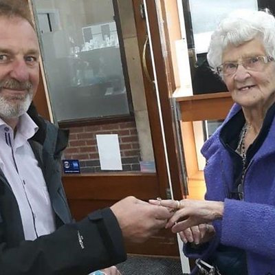 When Margaret Angell, 96, agreed to marry her future husband Cecil in 1948, money was too tight to justify a ring. However, Mr Angell said he would stretch to one if the Foxes lifted the coveted trophy. He died in 2005 but his promise was fulfilled by son Mike Angell, who bought his mother a ring days after the 1-0 win over Chelsea at Wembley. The family took Mrs Angell from her home in Leicester to a jeweller's shop in Melton Mowbray where she picked out her favourite from a selection of 1940s rings in blue and white colours. Mr Angell even went down on one knee to present the sapphire ring in style.