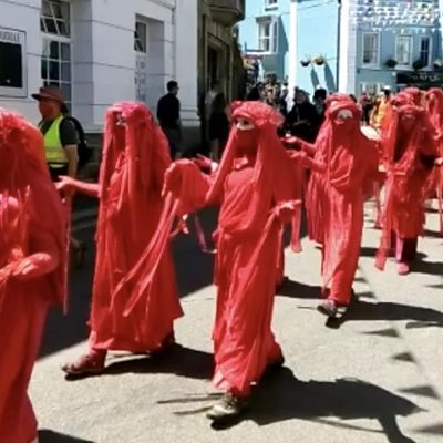 Campaign groups including Extinction Rebellion have filled Falmouth with sound and colour