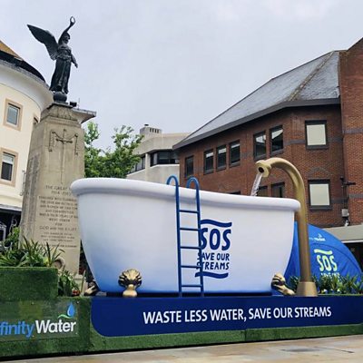A giant bathtub is on display in Woking to highlight the need to waste less water.