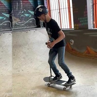 Skateboarding with cerebral palsy: Bear Cross 13 year old uses specially modified board
