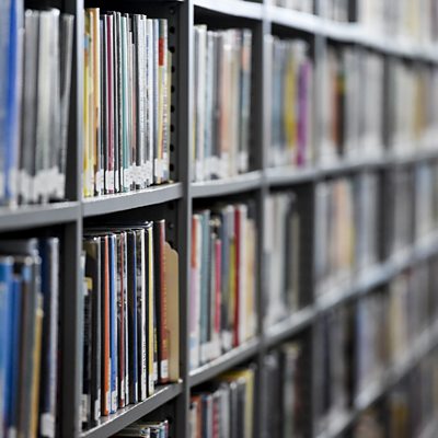 Kelly Scott talks to ewcastle Libraries manager Luke Burton after a book was returned 63 years late.
